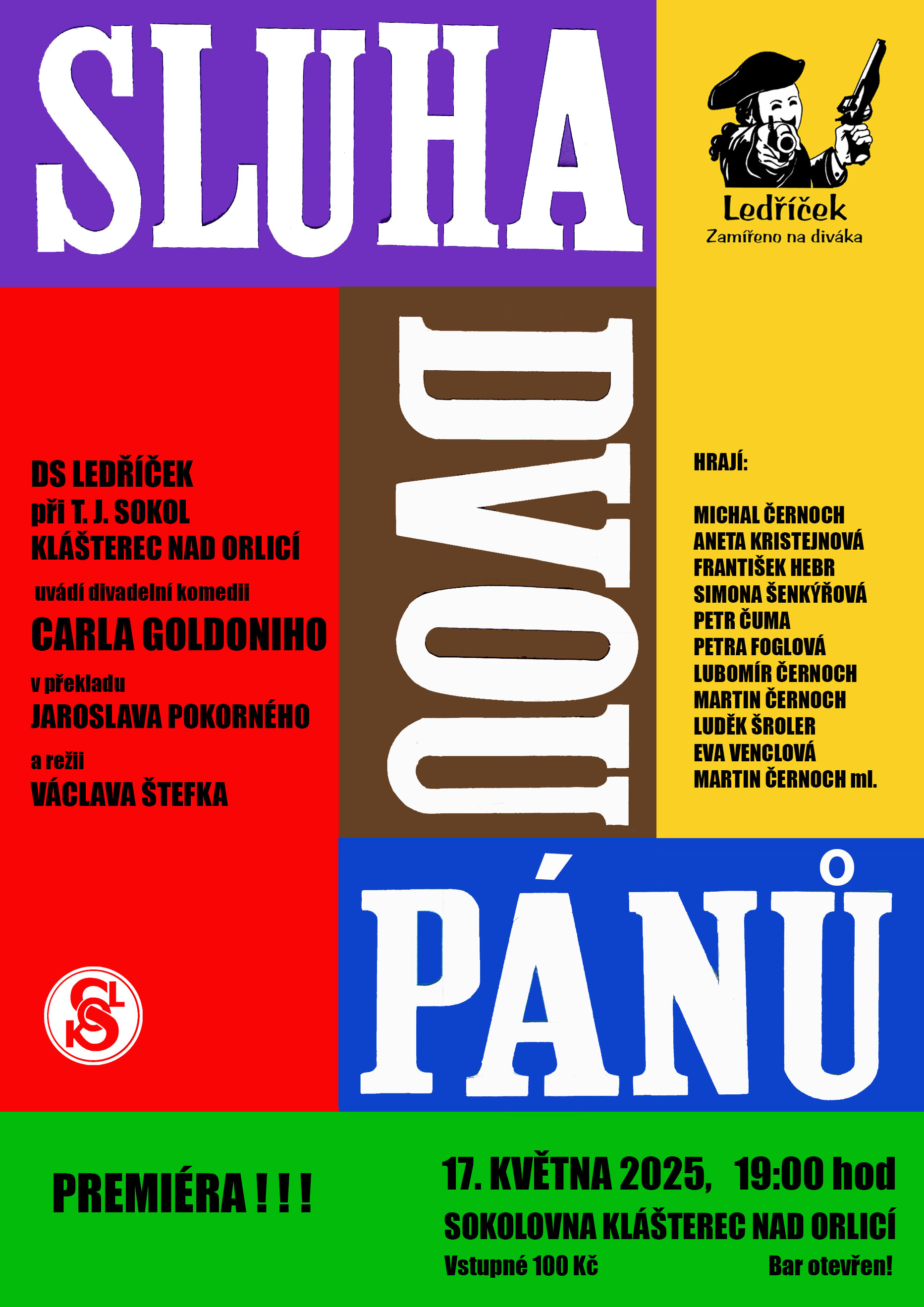 Divadelní soubor Ledříček Vás srdečně zve na premiéru v sobotu 17. května a omlouvá se za její přesun z původně plánovaného dubnového termínu z důvodu nemoci.
