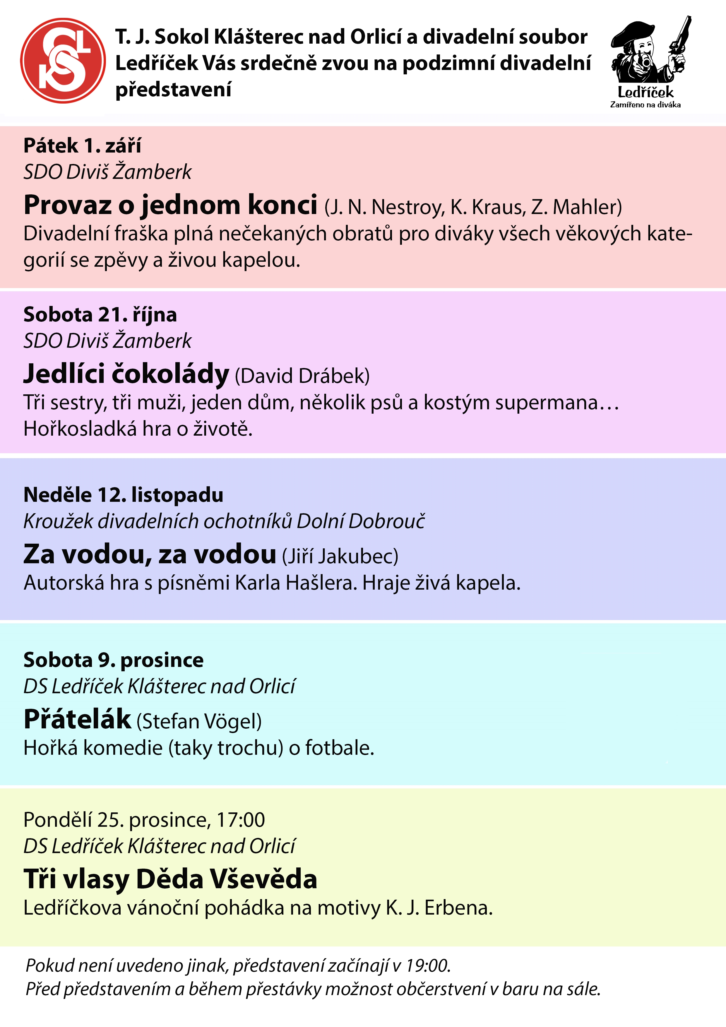 Za návštěvu budou stát i další představení, jejichž seznam s daty uvedení v klášterecké sokolovně najdete v příloze.